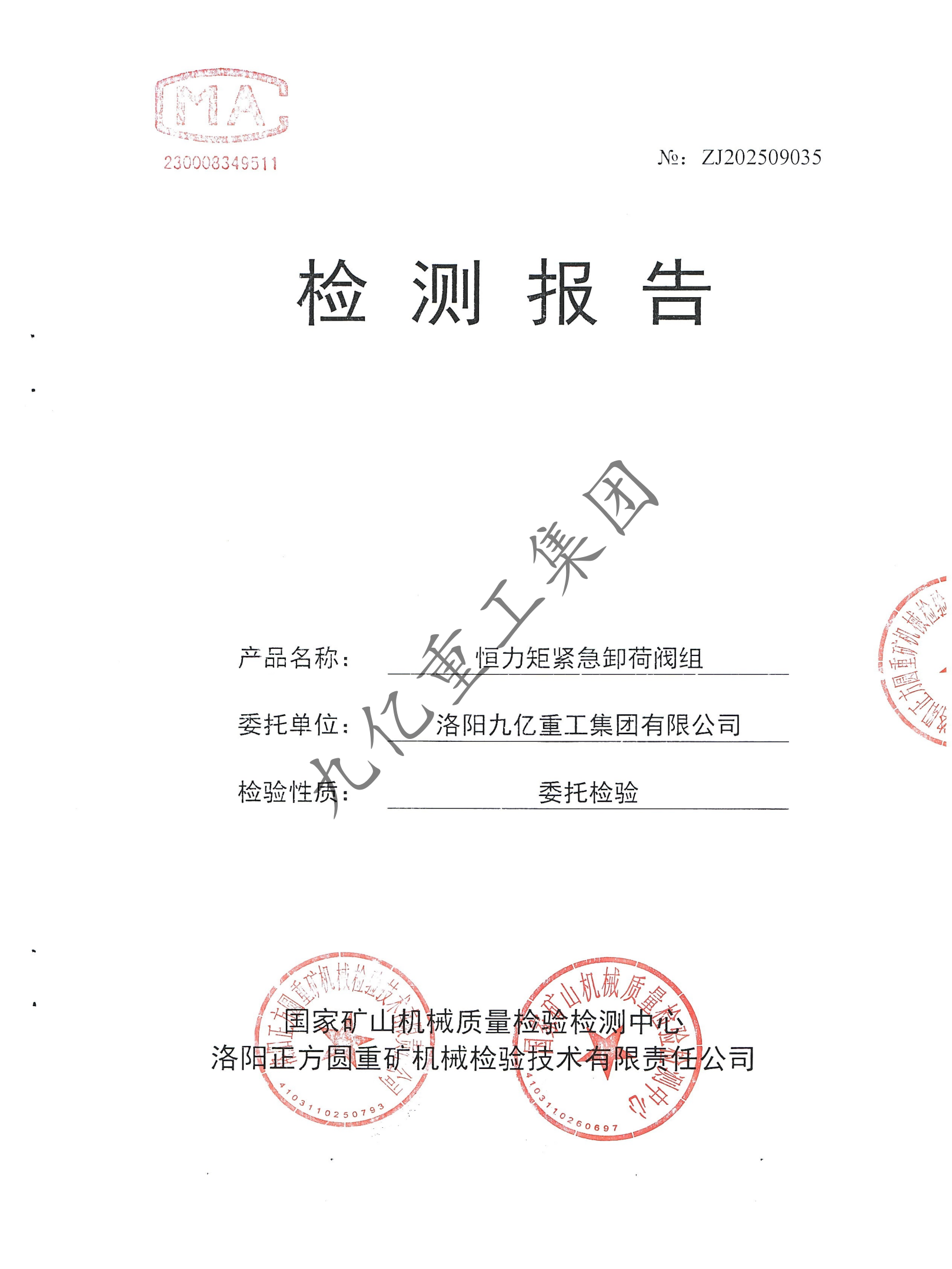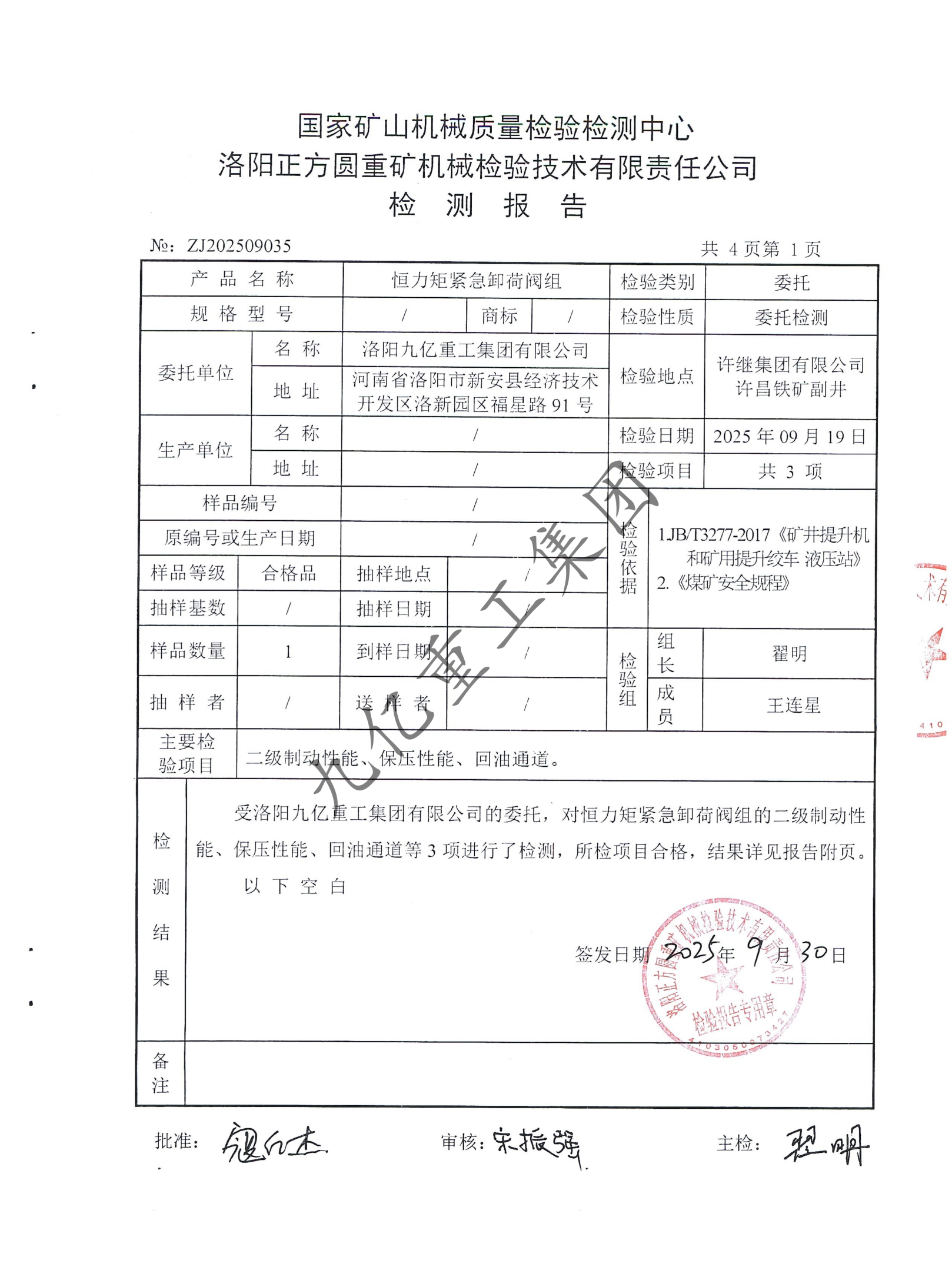 恒力矩緊急卸荷閥組檢驗(yàn)報告